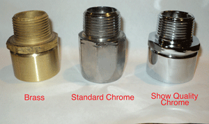 1" Black Rubber Hosewith smooth brass fittings- $65 1" Cloth - NLA 1" White Rubber - NLA I can make your black hose with standard chrome fittings at no extra charge or with show quality chrome for an additonal $30. For a female fitting on one end add $20. 1Hoses with brass fittings come with smooth ferrules (not crimped as others offer). Cloth hoses come with a plastic jacket to help prevent them from getting dirty. 3/4" White