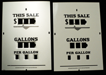 Gilbarco 86 G.O.C.(Gulf Oil Corp.) white faces - $50/set These are not the same size as a 'normal' GB 86. Your ID tag must say "G.O.C." |